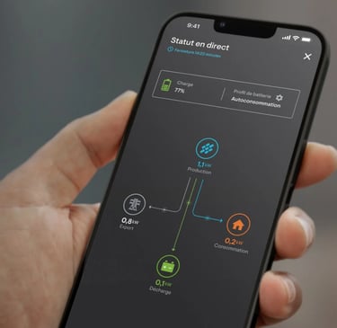 Votre installation est prévue pour évoluer en fonction de vos besoins: ajout de panneaux supplémentaires, installation d'une batterie, pilotage de votre chauffe-eau à résistance ou de votre borne de recharge pour optimiser votre consommation.